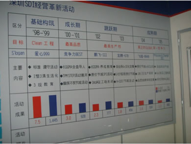 根據(jù)車間、部門的管理放置目標(biāo),對(duì)每個(gè)區(qū)域的看板內(nèi)容進(jìn)行設(shè)計(jì),與車間主任和部門長(zhǎng)溝通進(jìn)行修訂和優(yōu)化,打造有內(nèi)涵,有文化的VIP參觀通道。